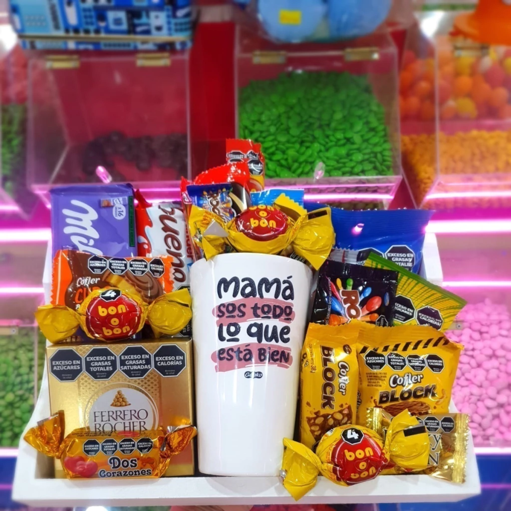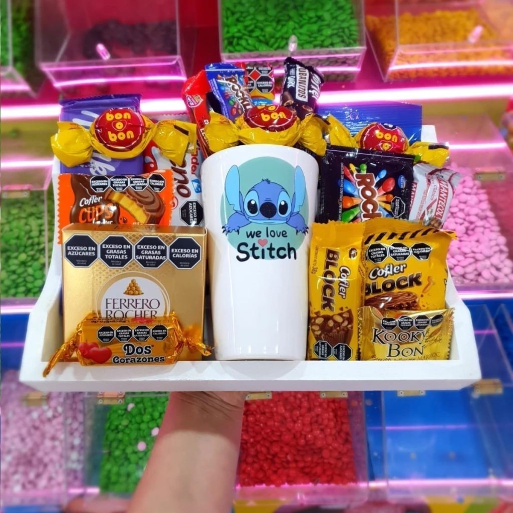 BANDEJA CON GOLOSINAS MAS PELUCHE Y LLAVERO