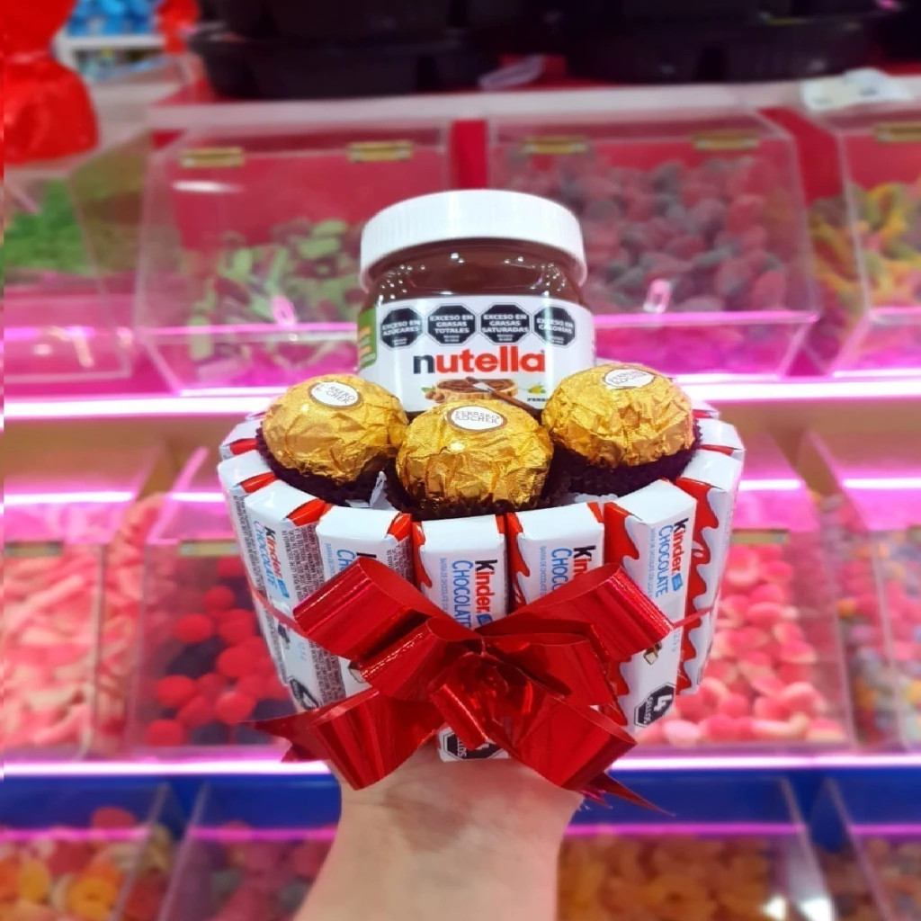 BANDEJA CON GOLOSINAS MAS PELUCHE Y LLAVERO
