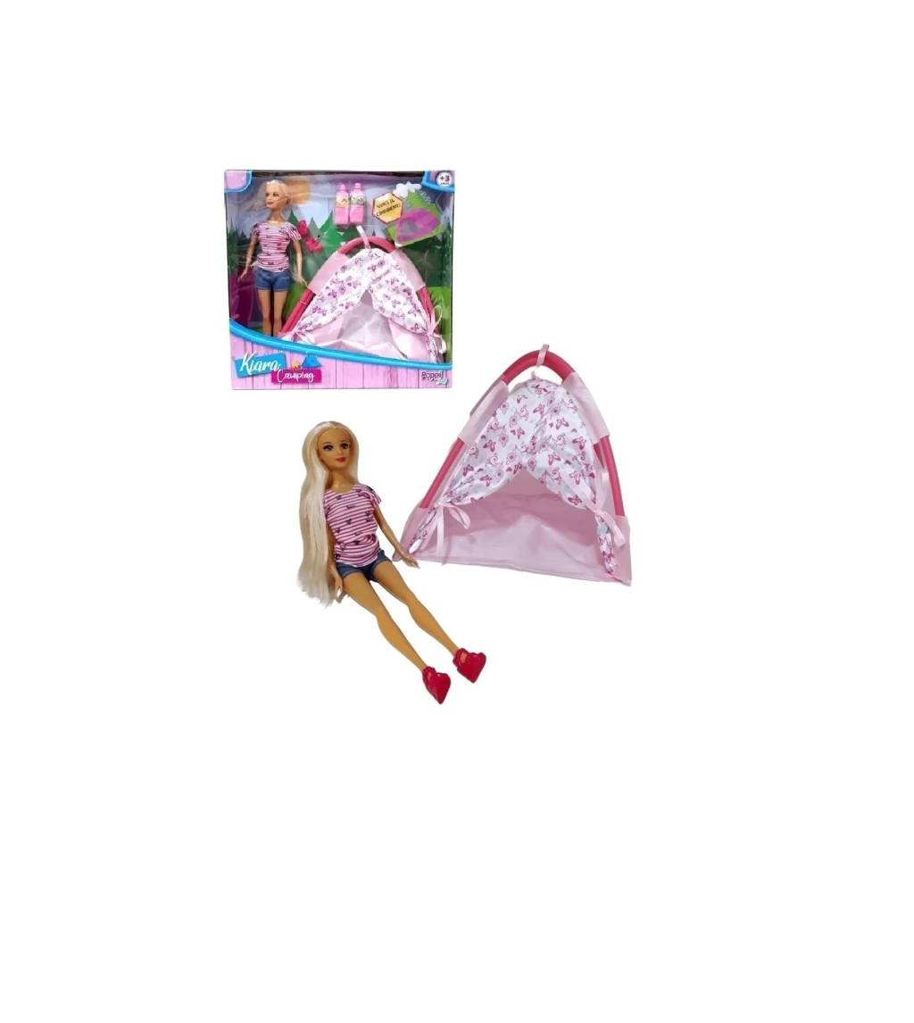 ANIMATE A VIVIR LA EXPERIENCIA DE ACAMPAR CON KIARA! UNITE A ESTA AVENTURA+ MUNECA POPPI KIARA DE CAMPING+ ARTICULADA EN BRAZOS- PIERNAS Y CABEZA+ ALTURA DE KIARA- 28 CM+ PELO LACIO PARA PEINARINCLUYE-+ 1 CARPA+ ZAPATOS+ 2 BOTELLAS+ MEDIDAS DE LA MUNECA-+ ALTO- 28 CM+ ANCHO- 6 CM+ EDAD RECOMENDADA- +3 ANOS