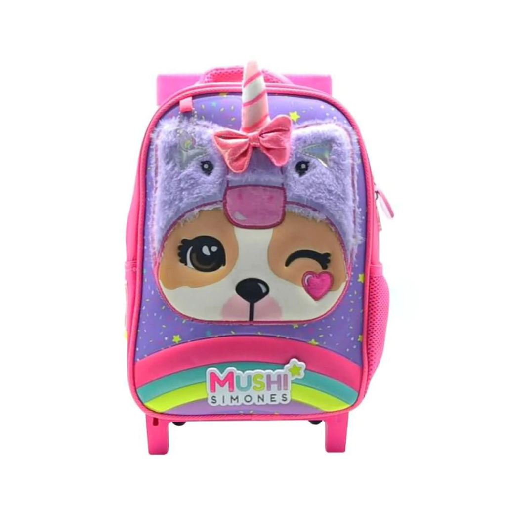 Mochila con carro 12" . 1 compartimiento y 1 bolsillo lateral . tiras de hombros y espalda acolchonadas y reforzadas . cierres con apliques.