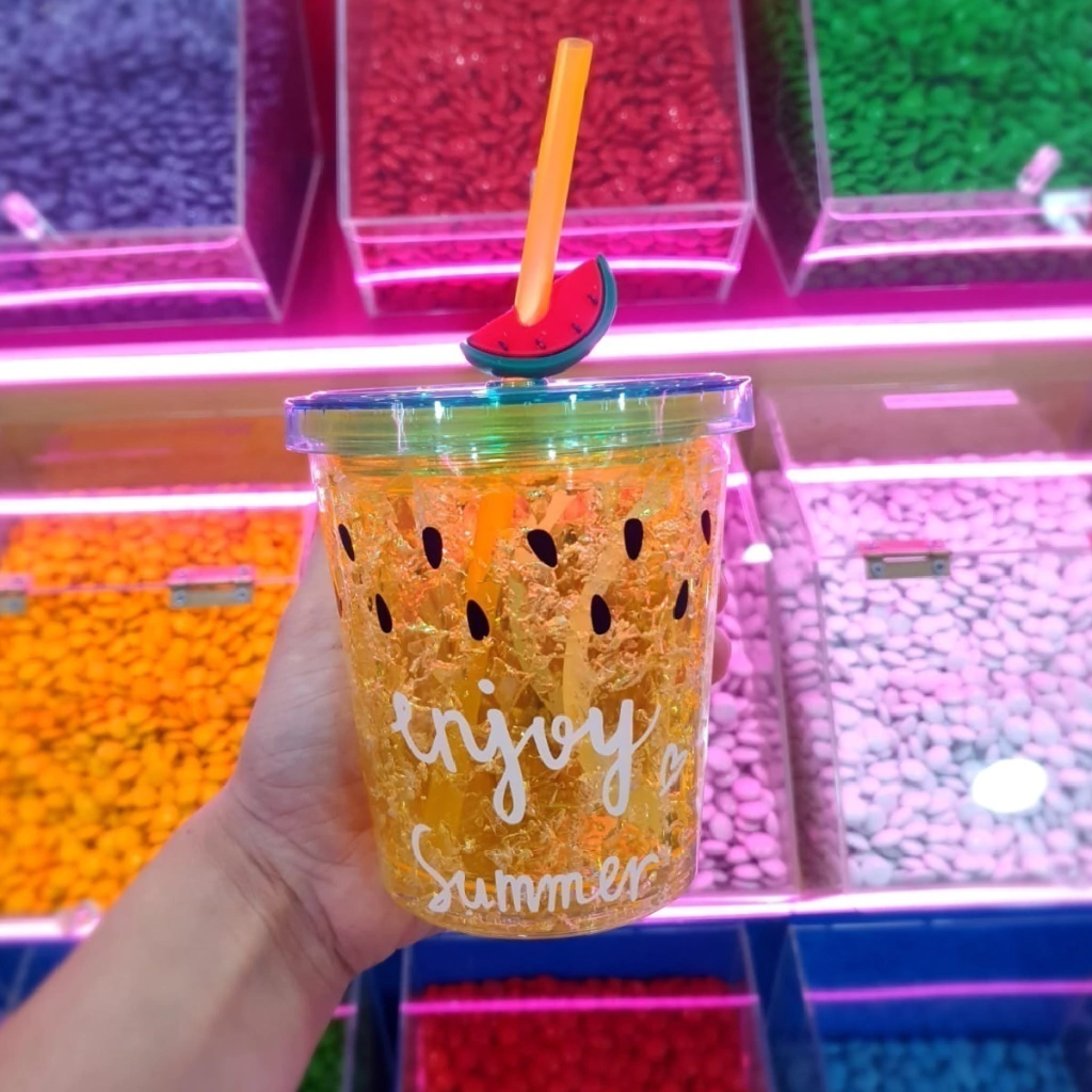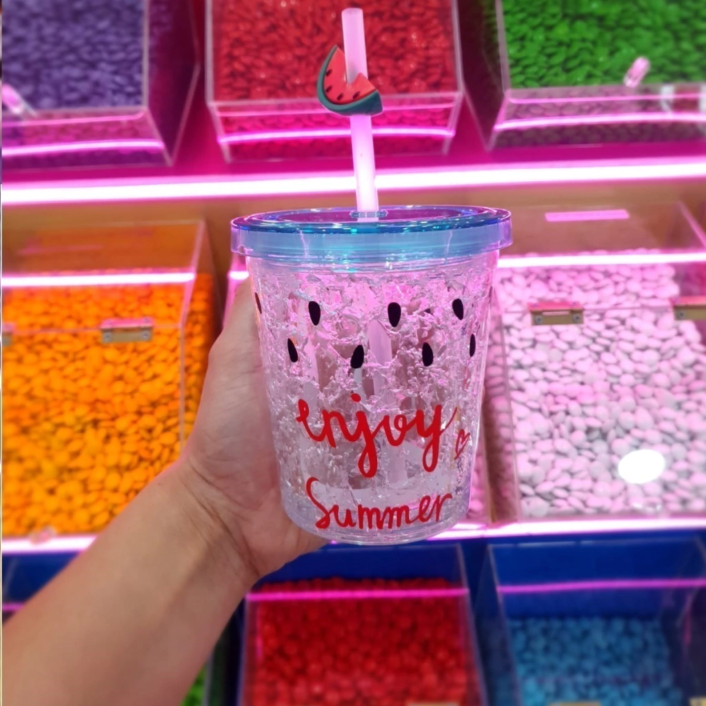 VASO DE ACRILICO CON DIBUJO / PURPURINA
